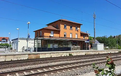 Wicklesgreuth station is a railway station in the Wicklesgreuth district of the municipality of Petersaurach, located in the Ansbach district in Middle Franconia, Germany. The station is located at the junction of the Nuremberg–Crailsheim and Wicklesgreuth–Windsbach lines of Deutsche Bahn.[1]