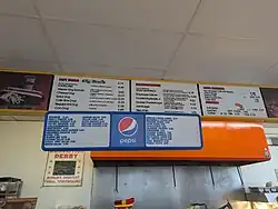 The restaurant served hot dogs, chili dogs, hamburgers, and other typical fast food menu items.[29] Most notably footlong hot dogs were served.[8] The chain also offered a quarter pound meal called the "Big Frank".[30] Currently, the Mansfield location has footlong hot dogs, sandwiches, hamburgers, and milkshakes.[31]