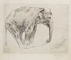 Indian elephant, etching