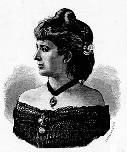 Despite some reports that she performed at the Royal Swedish Opera,[1] contemporary accounts state that as she had learnt her roles in French, she was unable to sing there as the director had insisted on performances in Swedish. Instead, she returned to France in 1877 where she spent the winter season with the Royal Opera of Versailles. The following year she moved to Italy where she sang in various cities for the next three years, particularly in Naples and Milan. Her most successful roles were[3] Margaretha in Gounod's Faust,[1] Maddalena in Verdi's Rigoletto, and in Filippo Marchetti's Ruy Blas.[3] She also appeared as Fides in Meyerbeer's Profeten and Amneris in Verdi's Aida.[1]