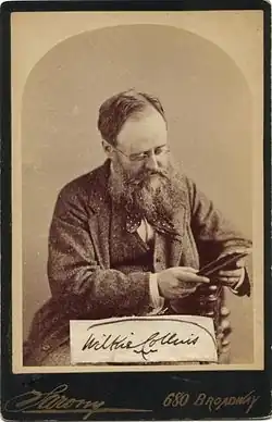 In 1873–74, Collins toured the United States and Canada, giving readings of his work. The American writers he met included Oliver Wendell Holmes Sr., and Mark Twain. He began a friendship with photographer Napoleon Sarony, who took several portraits of him.[18]