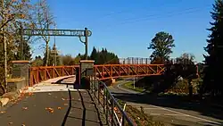 By 2003, the WHT was recorded to cross 35 bridges and trestles.[3] The trail in Lewis County contains 18 bridges[7] and crosses the Newaukum River by way of the Northern Pacific Railway Newaukum River Bridge near the Chehalis trailhead,;[8] it passes over the Chehalis River five times in the county including Bridge 5 and Spooner Bridge, east and west respectively, near Adna.[9] A spur traverses through Rainbow Falls State Park near Dryad and passes over the Dryad Bridge towards the ghost town of Walville.[4]