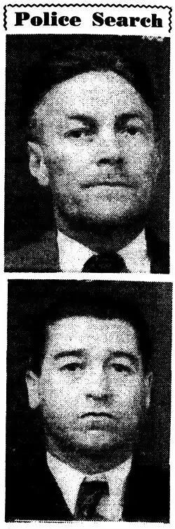 Newspaper photographs of Hayes (top) and Hollebone, published during the police manhunt following the murder of 'Bobby' Lee on 29 May 1951.