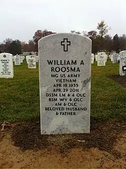 In retirement, Roosma was a resident of Fairfax Station, Virginia.[28][29] Among his post-military pursuits was consulting work for corporations including McDonnell Douglas and Boeing.[29] He died in Fairfax Station on April 29, 2011.[29] Roosma was buried at Arlington National Cemetery.[29]