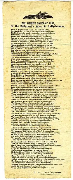 Early broadsheet version of Allingham's "Adieu to Ballyshannon"