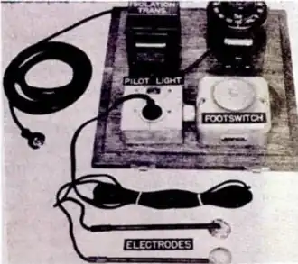 William Kouwenhoven's research focused on the effects of electricity on the heart, and he wanted to develop an instrument that would revive or shock the heart without invasive surgery. The first procedures were done on rats and dogs, but both investigations failed to produce groundbreaking results. Then, in 1925, the Johns Hopkins School of Hygiene and Public Health was offered a $10,000 award by the Consolidated Edison of New York in collaboration with Simon Flexner and the Rockefeller Institute to investigate and examine the effects of electricity on the human body.[4] The principal investigator of this Consolidated Edison study, Johns Hopkins neurologist Othello Langworthy, brought William Kouwenhoven, who was currently the professor of electrical engineering, to this team. By 1928, Kouwenhoven and his team were able to observe the effects of DC and AC shock on the heart. They noticed that when low-voltage shocks were applied to the heart, ventricular fibrillation was induced.[5] Kouwenhoven also discovered that high voltage shocks from the electrodes placed on the rats' heads caused the heart to stop pumping blood because the lungs had shut down completely.[6]