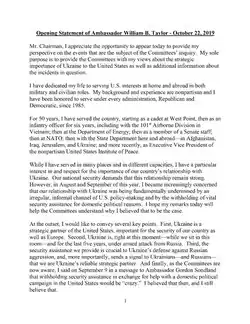 - ^ "Opening Statement of Ambassador William B. Taylor". The Washington Post. October 22, 2019. Archived from the original on October 22, 2019. Retrieved October 23, 2019.