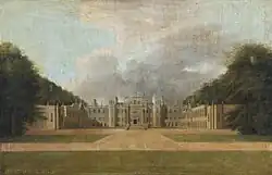 Bell was the beneficiary of John Delaval's fondness for projects. After Delaval was made a baronet in 1761, this took the form of showcasing his growing wealth and prestige by upgrading his properties. He added to the array of family portraits at Doddington Hall, employing prestigious painters such as Joshua Reynolds.[23] Then, at the end of the 1760s, he turned his attention to Seaton Delaval Hall and employed William Bell to help him realise his plans. John Delaval was sufficiently impressed with Bell's work to offer him an annual income of £50 (about £9000 in today's money) and a cottage to live in.[4] Bell thus effectively became Delaval's staff artist,[24] painting on a grand scale and acting as drawing master for his children.[25] A significant further benefit for Bell was that, when he was studying and painting in London, he was able to live at Grosvenor House, the Delavals’ metropolitan residence.[14]