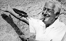 ![]() William Castle with a fake cockroach, c. 1976 | |
