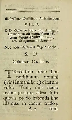 Dedication of Œconomia Corporis Animalis (1695) by William Cockburn
