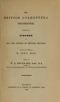 - ^ Shuckard, William Edward; Spry, W. (1840). The British Coleoptera delineated, consisting of figures of all the genera of British beetles. London: W. Crofts. doi:10.5962/bhl.title.59532.