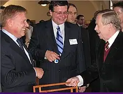 William Martin was elected to membership in the Council on Foreign Relations in 1983 and chaired the CFR’s energy security group from 1994 to 2004. In 1987, he was lead author in a Trilateral Commission report on Maintaining Energy Security in a Global Context.[6] He also served as a member of the Board and head of development committee of the World Resources Institute. In 2000, he joined NSC colleague Roger Robinson and the Czech President Vaclav Havel to create the Robinson-Martin security scholars program of the Prague Security Studies Institute.[32] In 2004, he joined the Nobel Prize recipient Joseph Stiglitz to chair a working group on energy for the DPRK for the United Nations.[33] Mohamed Elbaradei, Director General of the IAEA, appointed Martin to coordinate a study of the future of IAEA which resulted in the report in 2008.[34] Long interested in Japan issues, he established the Santa Fe seminar and leaders program to bring distinguished Americans and Japanese together to study the importance of safe nuclear energy.[5] In 2013, he had the honor to be the only foreign participant to testify before Japan’s METI on nuclear power in the post Fukushima era.[5]