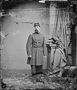 On September 1, 1861, Morris resigned his commission in the volunteers and the following day was commissioned colonel of the 135th New York Volunteer Infantry Regiment, which was redesignated the 6th New York Heavy Artillery Regiment in October.[5] Colonel Morris's regiment served in the Middle Department in the defense of Baltimore. On March 16, 1863, Morris was promoted to brigadier general of volunteers to rank from November 29, 1862, and served in the Middle Department from December 1862 until June 1863. During the Battle of Gettysburg, Morris's brigade was in reserve. When Major General William H. French took over command of the battered III Corps, Morris's brigade was transferred to 1st Brigade, 3rd Division, III Corps, Army of the Potomac on July 10, 1863. The 3rd Division participated in the pursuit of Lee's army after the Battle of Gettysburg, with Morris's brigade in action during the Battle of Manassas Gap on July 23, 1863. Morris served in the Bristoe Campaign from October to December 1863, and fought in the Battle of Mine Run in November 1863.[2]