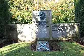 - Lord Arthur Vincent Hay (1886–1914), who was killed in action in the First World War during the First Battle of the Aisne.[11] The inscription on his gravestone in France reads: "IN SUCH A DEATH THERE IS NO STING IN SUCH A GRAVE EVERLASTING VICTORY. (MOTHER)".[11] He married Menda Ralli, only daughter of Ambrose Ralli, in 1911.[12] After his death, she married Col. Robert Edward Kennard Leatham.[2]