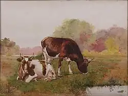 He spent many summers at a large family country residence in Walpole, Massachusetts painting the scenic vistas. He is also known to have painted in Rockport, Massachusetts with his friends, Lester Stevens and Marshall Johnson, Provincetown, the Berkshires and the Lynn marshes. Although best known for his landscapes he did some portrait work of his wife and daughter, Miriam. A favorite and recurring theme of Williams was cows, a subject he studied and he studied and painted at great length. His grand daughter remembers him keeping a stuffed cow's head in his studio in Newton that he used as a model and also of him using a mirror to look at his subjects instead of looking at them directly. Every evening he would go to the back yard where he had a platform and paint a sunset.