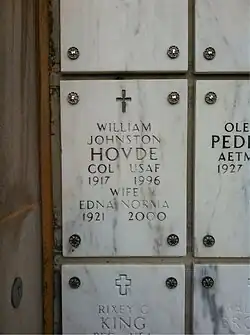 - ^ a b c d Marshall, Bill (October 2006). "William Johnston Hovde". P-47 Thunderbolt Pilots Association. Retrieved November 20, 2016.