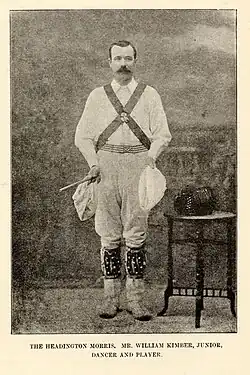 He played the concertina for his local Morris Dancers, the Headington Quarry Morris Men, and was the musician when Cecil Sharp encountered them in 1899. Sharp, who was to be in the forefront of the revival of English folk music and dancing, asked Kimber to return the next day and play the tunes again for him to record.[3] In 1905, Mary Neal, the founder of the Espérance Club, asked Sharp for advice about folk dances which could be performed by the young women of the club; he told her about Kimber and the Headington morris, and Neal invited Kimber to come to London to teach the members the dances for their Christmas party.[4]
