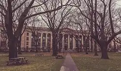 William worked his way through college, first attending Hanover College. The college merged to Madison University, requiring William to walk to school in Madison. For two years, he stayed the weekends in Hanover and walked to school each Monday morning,[1] carrying a week's worth of food and books.[5] He then studied at Miami University in Oxford, Ohio, where he graduated the fifth of his class in 1846. He was nineteen years old.[7] In Lexington, Kentucky, he learned the law through self-study, while earning an income as a teacher.[1] In 1848, he was admitted to the bar in Kentucky. He then studied at the Harvard Law School for two years[7] and received his LLB in 1850.[11] Chief Justice Joel Parker, a professor at Harvard, brought him into his household and treated him like a member of the family while he studied at Harvard.[1] Parker provided a letter of introduction for Nathaniel Wright in Cincinnati, since he decided to move to the area but did not know anyone in the city.[1]
