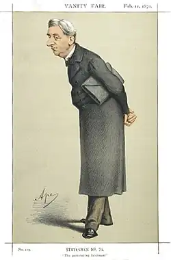 As depicted by "Ape" (Carlo Pellegrini) in Vanity Fair, 11 February 1871