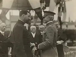 Major General William P. Burnham, commanding the 82nd Division, shaking the hand of the mayor of Toul, France, mid-1918.