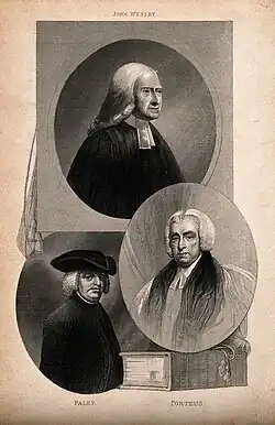Three churchmen: John Wesley, William Paley, and Beilby Porteus. A posthumous engraving.