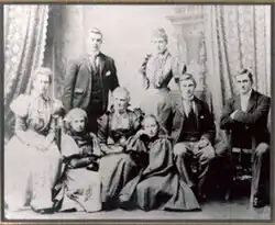 William and Catherine had eight children – Elsie Frances, Kate, George Herbert, Mary Adelaide (died 1881, aged 5 years), William Graham, Reginald Thornhill, Nora Bell Eaton, and Olive Lee Darwent. The family’s lives were much reported in the social columns of Dunedin’s newspapers, and their circle of friends included William and Rachel Hodgkins,[36] and their children Isabel and Frances Hodgkins.[37] After William’s death Catherine sold the remaining farms,[38][39] and continued family life in Dunedin. She died in 1918 and was laid to rest in the family plot at Dunedin Northern Cemetery with William and Mary Adelaide.