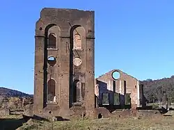 Ruin of the blower house of Sandford's blast furnace at Lithgow, opened in 1907. It closed in 1928, when blast furnace operations were moved to Port Kembla.
