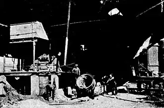 Sandford embarked on a major expansion, starting with the construction of a large modern blast furnace. On 30 April 1907, his daughter, Clarice, started the blast of the new furnace, and Sandford's proudest moment was when it was officially opened on 13 May 1907.[36][37][38][39] As part of the same expansion, a new 15-ton Open Hearth furnace was added to make steel from the pig-iron,[37] a new fishplate mill commenced operation in 1906, and a short rail branch line laid to the iron ore mine at Coombing Park near Carcoar.[40][41] The Lithgow works had become the first integrated iron and steel works in Australia.
