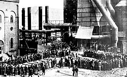 Guests watch the tapping of molten iron at the official opening of the blast furnace, 13 May 1907.[14]