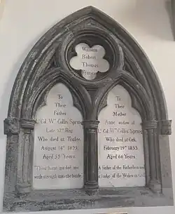 Memorial to William Collis Spring and his wife Anne in St John the Evangelist's Church, Tralee, County Kerry.