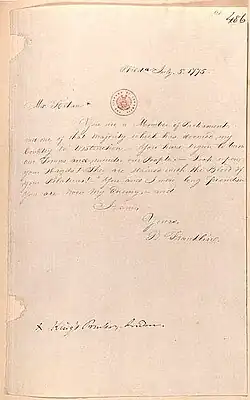 Strahan and Franklin corresponded about politics and matters involving their printing businesses throughout much of their lives. There are approximately 130 surviving letters between the two men, many of which have been reprinted in The Papers of Benjamin Franklin.[6]