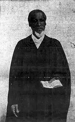 Dixon became a leader in the Baptist church. He gave the introductory sermon at an annual meeting of the Long Island Baptist Association. He held offices of president and of corresponding secretary of the Northeast Baptist Missionary Convention.[3] Dixon was one of the original trustees of the Citizen's Union Cemetery Association until 1854, which was then reorganized into the Mount Pleasant Cemetery Association,[7] where he served as secretary.[3] He was a founder of the New England Baptist Association and was elected its president in 1900.[8] He was a member of the American Foreign Anti-Slavery Society.[9] He founded the first black post of the Grand Army of the Republic, a Civil War veterans organization, in about 1879, and was made an honorary member in August 1907. He was a trustee and vice president of the Howard Colored Orphan Asylum.[10] In 1902 he was granted a Doctor of Divinity by State Baptist College in Little Rock, Arkansas.[11]