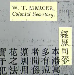 William Thomas Mercer (Chinese: 孖沙; Sidney Lau: Ma1 Sa1) (17 October 1821 – 23 May 1879) was a British colonial administrator who served in Hong Kong from 1844 to 1866.