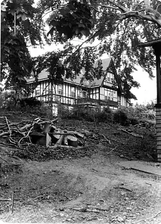 The William Trowbridge Forbes House was located in a residential setting northwest of downtown Worcester, and just south of the campus of Worcester Polytechnic Institute on the west side of Trowbridge Street. It was a large 2+12-story wood-frame structure, with steeply pitched gables, diamond pane windows, and extensive half-timbered stucco exterior. A stone terrace extended along its southern facade.[3]