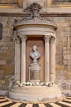 He died on 30 April 1792 and was buried in Ripon Minster (now Ripon Cathedral) where survives his unusual monument consisting of a representation of a Greek temple containing his bust by Joseph Nollekens.[1]