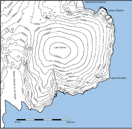 ![]() Map of Law Dome with Williamson Glacier towards center | |
