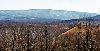 An aerial view of Wills Mountain (center) in Bedford County, Pennsylvania