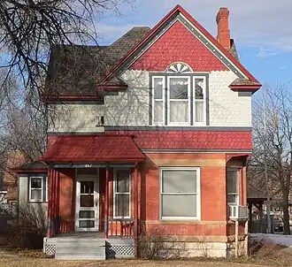 It is a two-story house built with "stone, brick, and wood ... used in an interesting combination", built in eclectic Late Victorian styles.[2]