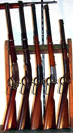 Winchester rifle is a comprehensive term describing a series of lever action repeating rifles manufactured by the Winchester Repeating Arms Company. Developed from the 1860 Henry rifle, Winchester rifles were among the earliest repeaters. The Model 1873 was particularly successful, being marketed by the manufacturer as "The Gun That Won the West".