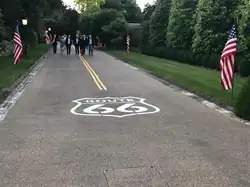 Route 66–themed drive connecting the rear grounds to the front entrance