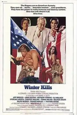 Winter Kills is a 1979 satirical black comedy thriller film written and directed by William Richert, based on the 1974 novel by Richard Condon. Inspired by the John F. Kennedy assassination conspiracy theories, its ensemble cast includes Jeff Bridges, John Huston, Anthony Perkins, Eli Wallach, Richard Boone, Toshirō Mifune, Sterling Hayden, Dorothy Malone, Belinda Bauer, Ralph Meeker, Elizabeth Taylor, Berry Berenson and Susan Walden.