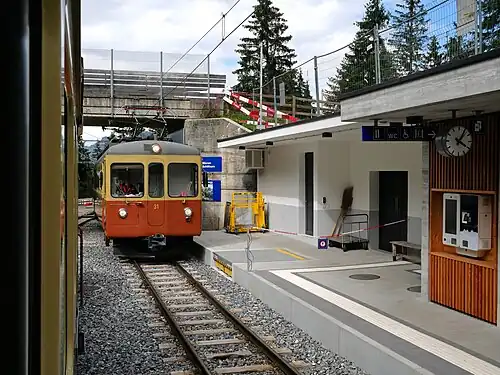 Winteregg station was heavily redeveloped as part of the on-going BLM developments that started in 2021. A new tunnel, passenger building and accessible bathroom facilities were added along with electronic ticket machines on the platforms. The new station is capable of handling the latest rolling stock from Stadler that is replacing the older trains.[6][7][8][9]