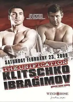 Wladimir Klitschko vs. Sultan Ibragimov, billed as "The Unification", was a professional boxing match contested on 23 February 2008 for the IBF, WBO and IBO heavyweight championship.[1]