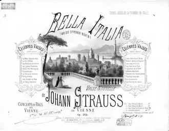 "Wo die Zitronen blühen" (German pronunciation: [ˈvoː diː tsiˈtʁoːnən ˈblyːən]; "Where the Lemons Blossom", or "Where the Citrons Bloom"), Op. 364, is a waltz by Johann Strauss II written in 1874. The waltz was composed during a tour of the composer in Italy where he travelled with the Langenbach Orchestra of Germany and performed the work at the Teatro Regio in Turin on 9 May 1874.