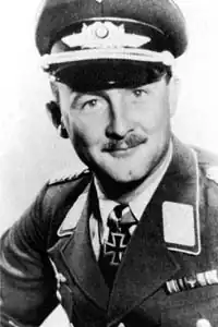 Upon his return to Germany he was awarded the Spanish Cross in Gold with Swords and Diamonds (Spanienkreuz in Gold mit Schwertern und Brillanten) and promoted to Hauptmann (Captain). He then served on the Stab (Headquarters) flight of the newly formed IV. Gruppe of the Jagdgeschwader 132 (JG 132—132nd Fighter Wing).[9] Over the next year, this Gruppe, which was commanded by Hauptmann Johannes Janke, was renamed to I. Gruppe of Jagdgeschwader 331 (JG 331—331st Fighter Wing) on 3 November 1938, before becoming the I. Gruppe of Jagdgeschwader 77 (JG 77—77th Fighter Wing) on 1 May 1939.[10]