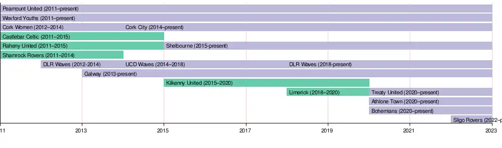 2011–12 Peamount United become the first Republic of Ireland team, including men's team, to qualify for the knockout stages of a European competition.[10] They also become the inaugural winners of the Women's National League.[11]