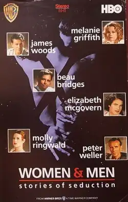 Women & Men: Stories of Seduction is a 1990 American drama film consisting of three separate short films. The three segments are directed by Frederic Raphael, Tony Richardson, and Ken Russell and written by Valerie Curtin, Joan Didion, and John Gregory Dunne, based on short stories by Ernest Hemingway, Mary McCarthy, and Dorothy Parker. The film stars James Woods, Melanie Griffith, Beau Bridges, Elizabeth McGovern, Molly Ringwald, and Peter Weller. The film premiered on HBO on August 19, 1990.[1][2][3]