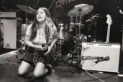 In the United Kingdom, the advent of punk in the late 1970s with its "anyone can do it" ethos led to women making significant contributions.[19][20] In contrast to the rock music and heavy metal scenes of the 1970s, which were dominated by men, the anarchic, counter-cultural mindset of the punk scene in mid-to-late 1970s encouraged women to participate. "That was the beauty of the punk thing," Chrissie Hynde later said. "[Sexual] discrimination didn't exist in that scene."[21] This participation played a role in the historical development of punk music, especially in the U.S. and U.K. at that time, and continues to influence and enable future generations.[22]