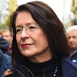 Female politicians currently hold 25% of seats in the Czech Parliament and 21% of seats in regional assemblies.[20][21] Markéta Pekarová Adamová has served as the Speaker of the Chamber of Deputies since 2021 and leader of the TOP 09 political party since 2019.[20] While Czech women remain underrepresented, the amount of female candidates and politicians elected to the national government has steadily increased in the last few decades.[22] In the 2021 election for the Chamber of Deputies, approximately 31.7% of candidates were female, the greatest amount of female candidates to run in this race in the nation's history.[23] Czech Republic does not have any legislatively mandated gender quotas, but voluntary party quotas to increase female representation are instituted within some political parties.[20] The actual effectiveness of these voluntary party quotas is debated. The Czech government previously opposed the implementation of EU gender quotas that would require 40% of board positions in publicity owned companies to go to women.[24]
