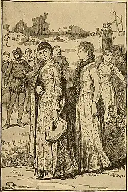 Women were known to provide a sense of stability. They came to the Jamestown Colony to marry men in the colony or to serve as indentured servants. Some women also came to the colony at a young age with their families, such as Cecily Jordan Farrar. In 1610, the colony's focus was on establishing families. Women were married soon after their arrival to the colony and were then expected to provide children to support the colony's growth. Single women could not own land after 1618 because the Virginia Company felt that if women could uphold land, they would be less likely to marry.[2] This was a concern since "Women frequently gave birth to ten or twelve children, but childbirth was very dangerous for women."[2]